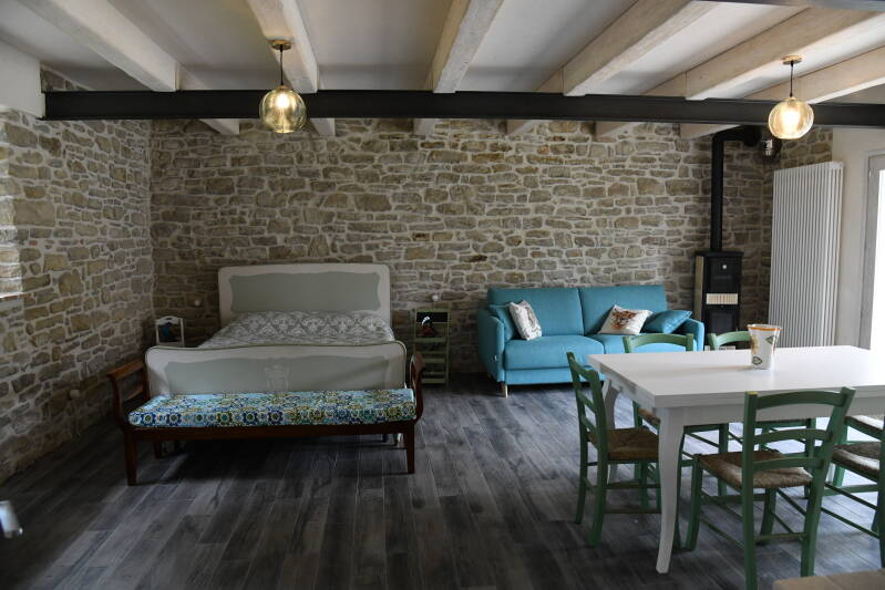 L'appartamento Volpe è composto da un monolocale con cucina attrezzata, divano, letto matrimoniale, bagno e stufa a legno. Può ospitare 3 persone e l'ingresso è indipendente